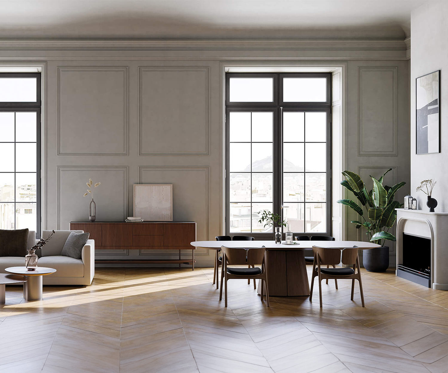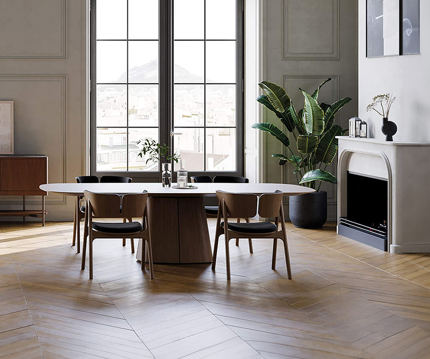 Der al2 tessera 001 Design Esstisch begeistert mit seinem außergewöhnlichen Design, das durch den zylinderförmigen Sockel in edlem Holzfurnier und die exklusive Tischplatte aus Keramik oder Walnussfurnier besticht. Die zentrale Sockelausführung sorgt nicht nur für eine stabile Konstruktion, sondern auch für großzügigen Platz für Ihre Gäste. So ist der Tisch ideal für Familienfeiern und gesellige Anlässe. In Griechenland mit besonderer Sorgfalt gefertigt, bietet dieser Esstisch eine exklusive, individuelle Verarbeitung, die Ihrem Esszimmer eine elegante und moderne Note verleiht.