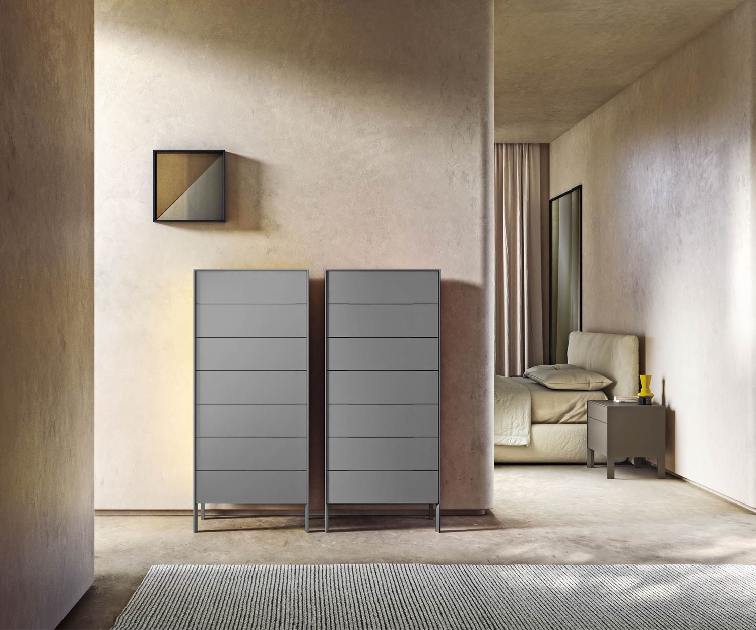 De buitenzijden en fronten zijn gemaakt van een hoogwaardige MDF-plaat en hebben een matte lakafwerking.De design hoge ladekast is verkrijgbaar in 5 matte kleuren: GR3 Beige (vergelijkbaar met RAL1019), GN1 Wit (vergelijkbaar met RAL9016), GN5 Lichtgrijs (vergelijkbaar met RAL7040), GN7 Donkergrijs (vergelijkbaar met RAL7043) en WN9 Zwart (vergelijkbaar met RAL9017). Selecteer gewoon de gewenste kleur in het configuratiemenu - en je hebt je nieuwe dressoir al geconfigureerd in je individuele design.