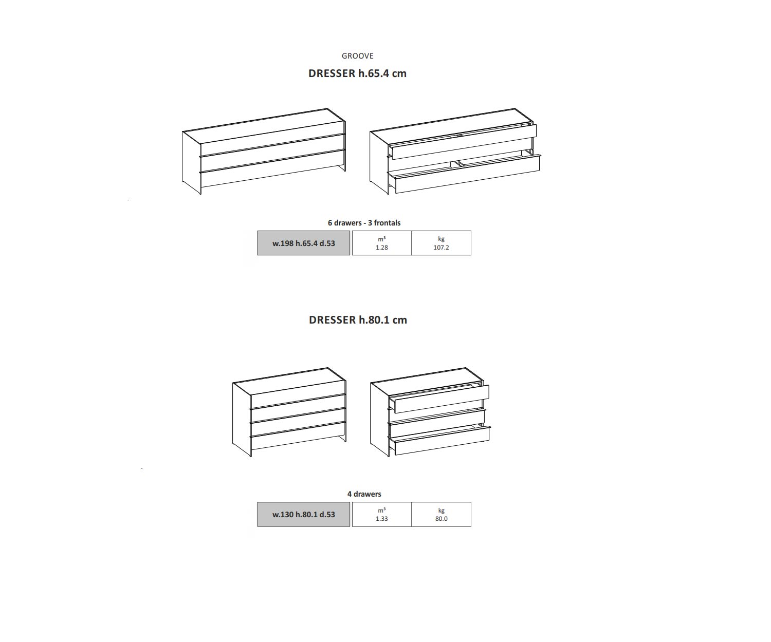 De Capo d'Opera Groove Design ladekast is verkrijgbaar in de volgende afmetingen: