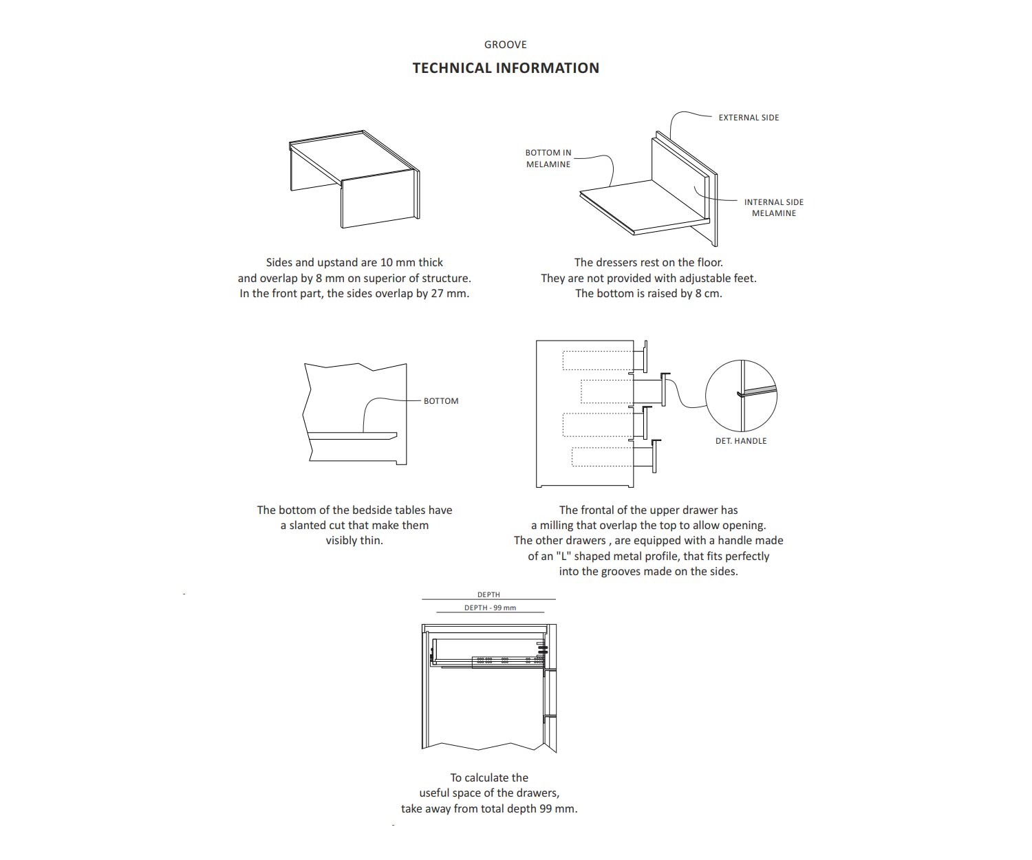 Verfraai de inrichting van je slaapkamer met onze elegant vormgegeven ladekast Capo d'Opera Groove. De moderne commode is gemaakt met 10 mm dikke zijpanelen en 8 mm uitstekende bovenpanelen en combineert duurzaamheid met moderne esthetiek.