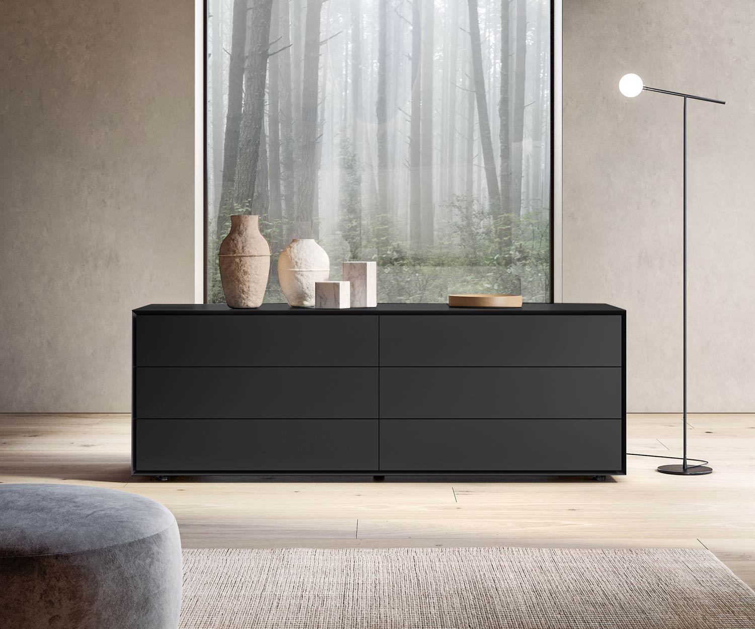 Capo d'Opera De Quarantacinque ladekast van is een meesterwerk van minimalistisch design dat indruk maakt met zijn duidelijke proporties en eenvoudige elegantie.