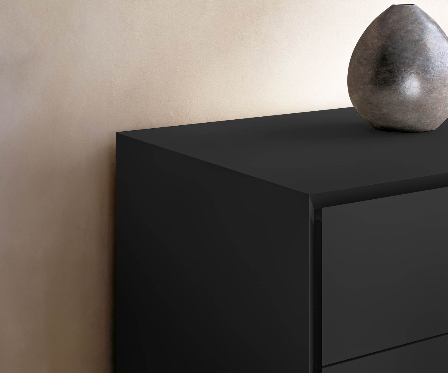 De buitenzijden en fronten zijn gemaakt van een hoogwaardige MDF-plaat en hebben een matte lakafwerking.De design ladekast is verkrijgbaar in 5 matte kleuren: GR3 Beige (vergelijkbaar met RAL1019), GN1 Wit (vergelijkbaar met RAL9016), GN5 Lichtgrijs (vergelijkbaar met RAL7040), GN7 Donkergrijs (vergelijkbaar met RAL7043) en WN9 Zwart (vergelijkbaar met RAL9017). Selecteer gewoon de gewenste kleur in het configuratiemenu en je nieuwe dressoir wordt geconfigureerd in jouw individuele design.