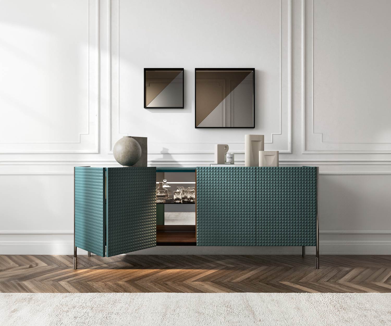 De 4 deuren van het Capo d'Opera Spin dressoir bestaan uit 2 vouwdeuren. Novamobili