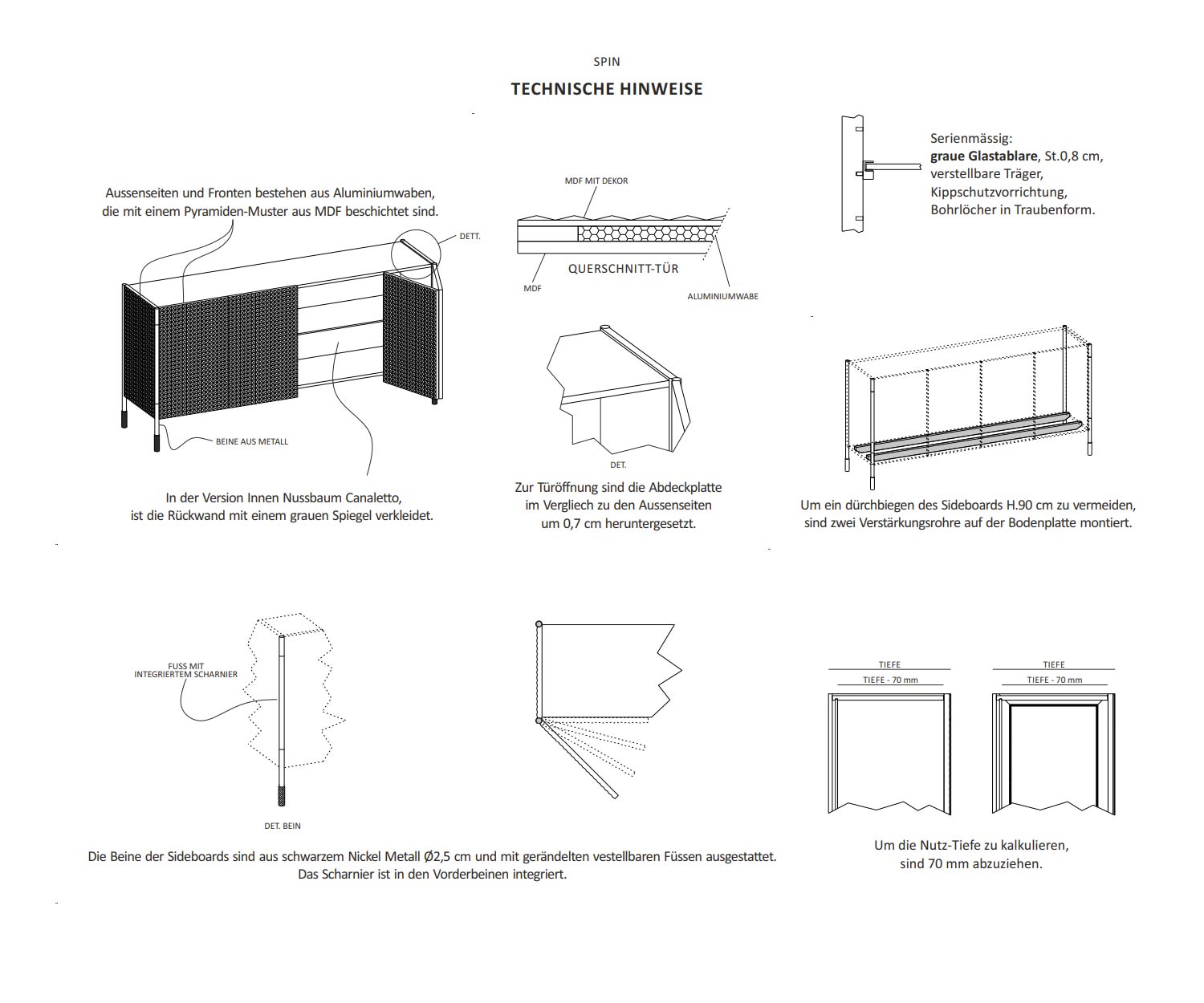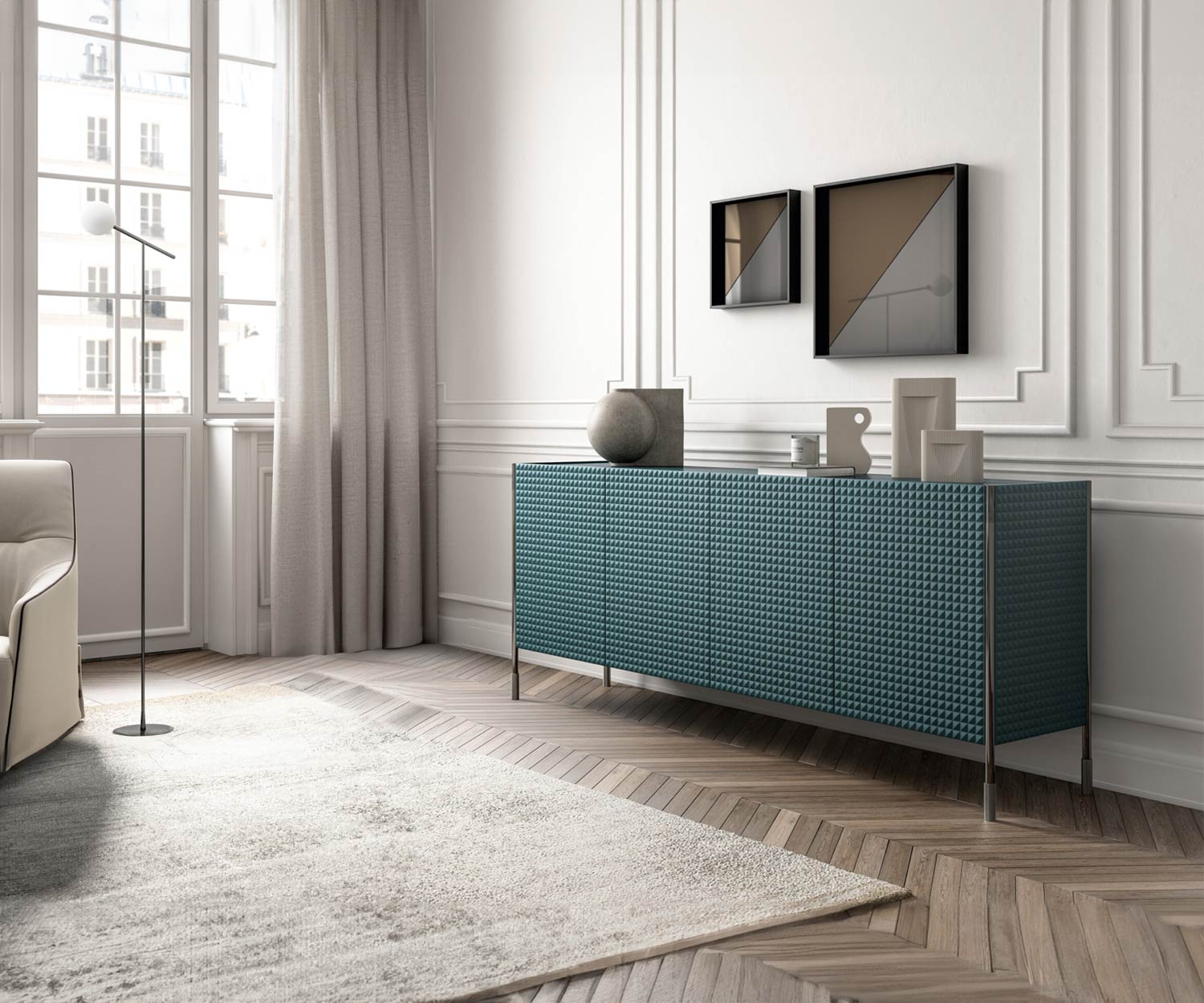 Het Spin Design dressoir van Capo d'Opera ontworpen door Alessio Bassan & Silvano Pierdona maakt indruk met zijn onmiskenbare ontwerp. De deuren van het dressoir zijn gemaakt van een hoogwaardige MDF plaat, met fronten en zijkanten gemaakt van een stabiele aluminium honingraatkern