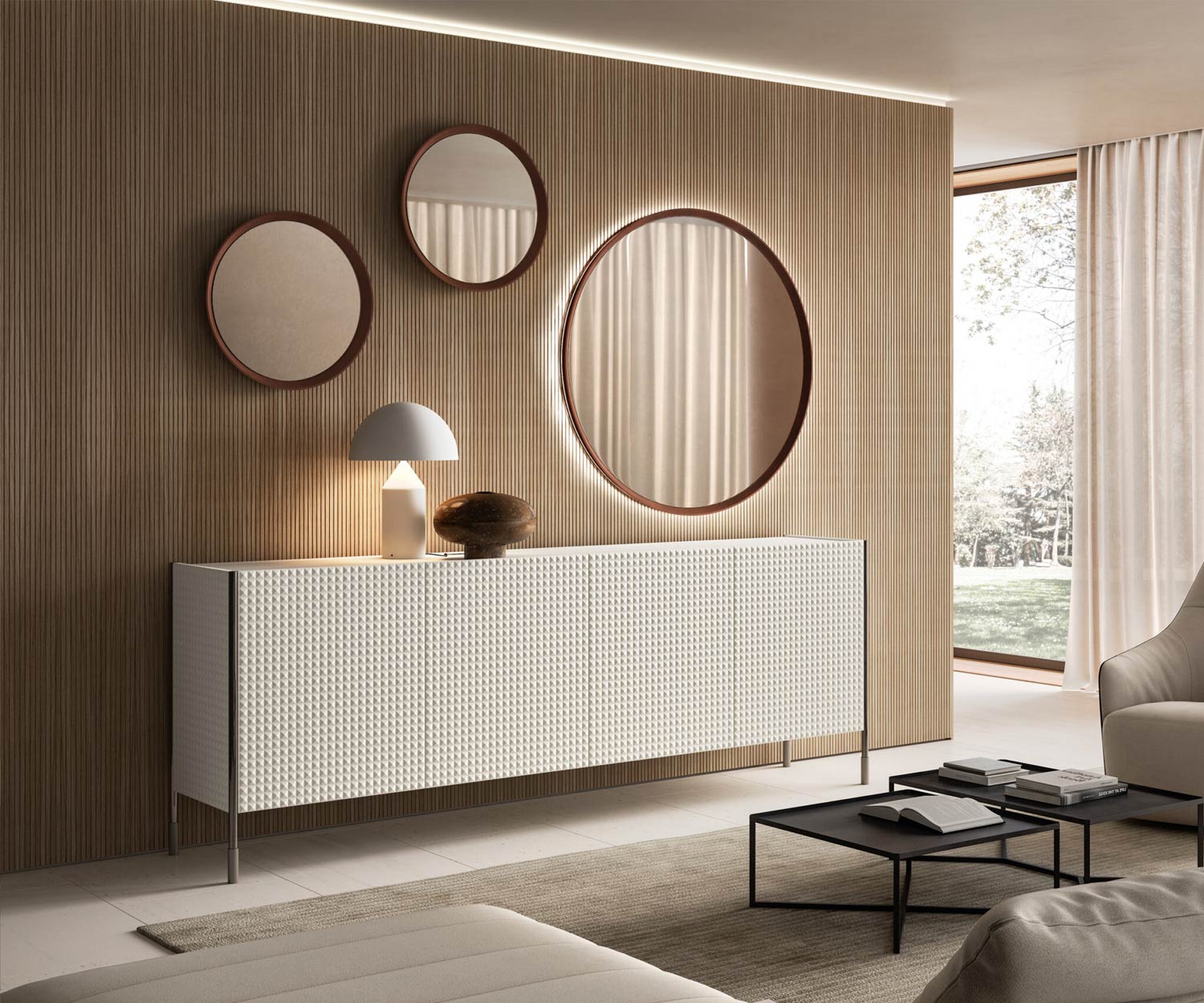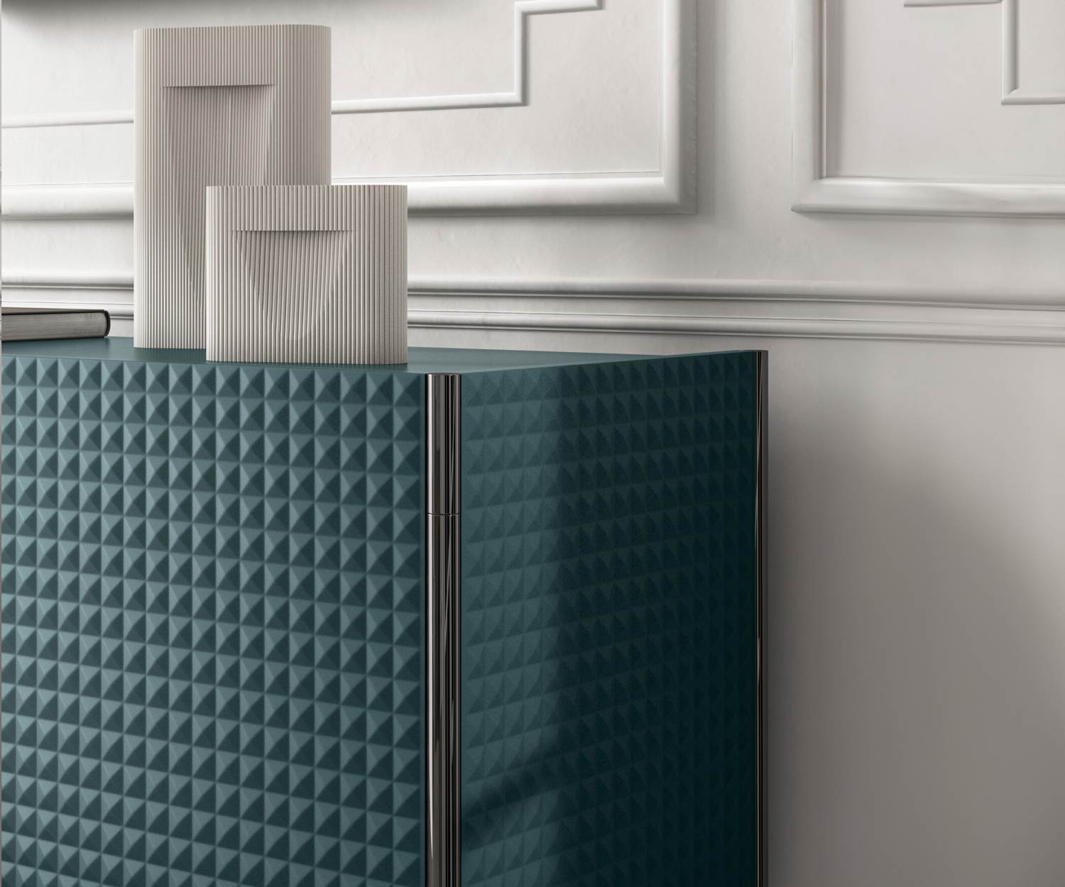 . Deze unieke structuur brengt een exclusieve luxe sfeer in een moderne woonkamer. Het Spin highboard past bij het design van het Capo d'Opera Spin dressoir.