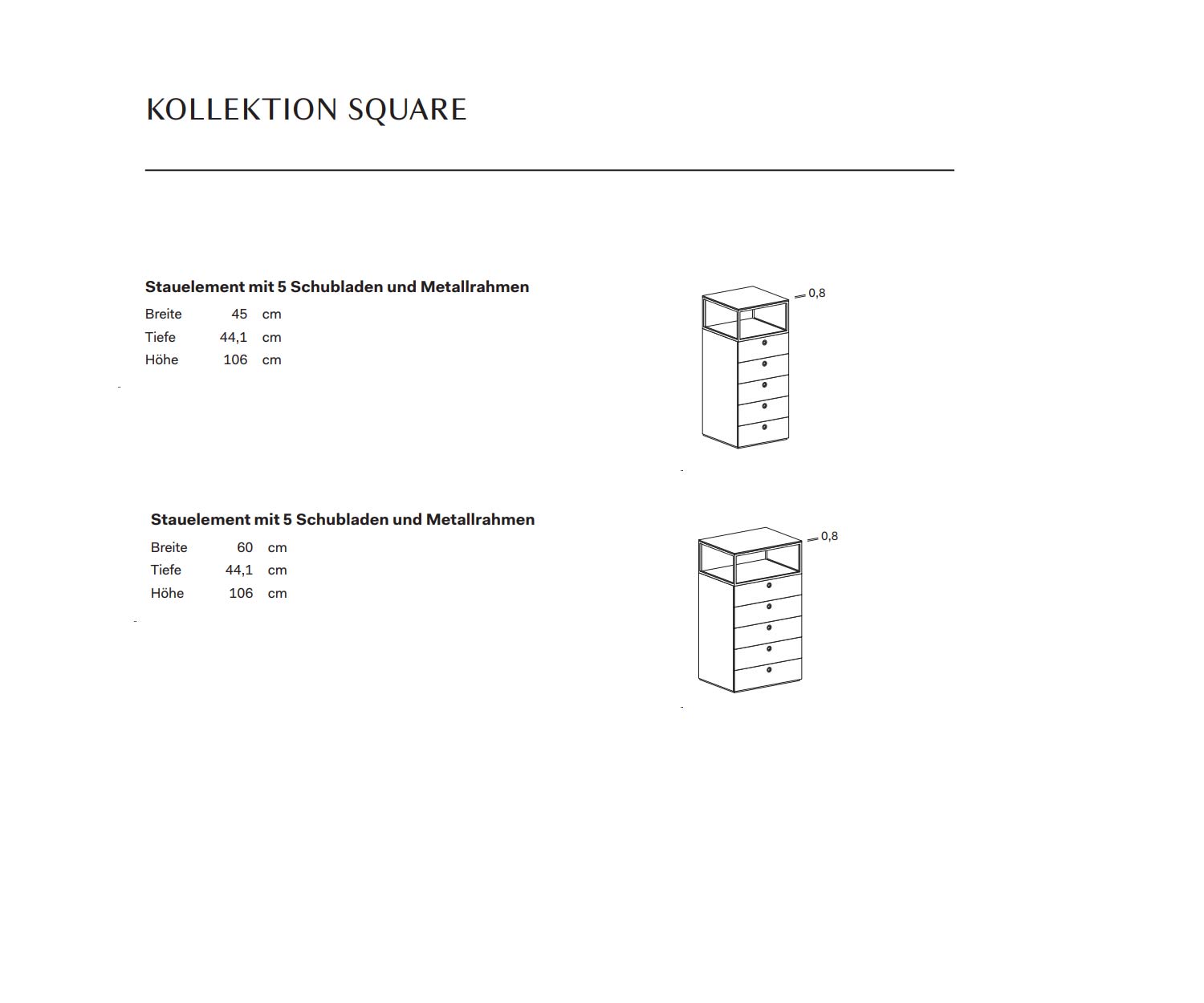 De Square ladekast is verkrijgbaar in de volgende afmetingen en uitvoeringen: