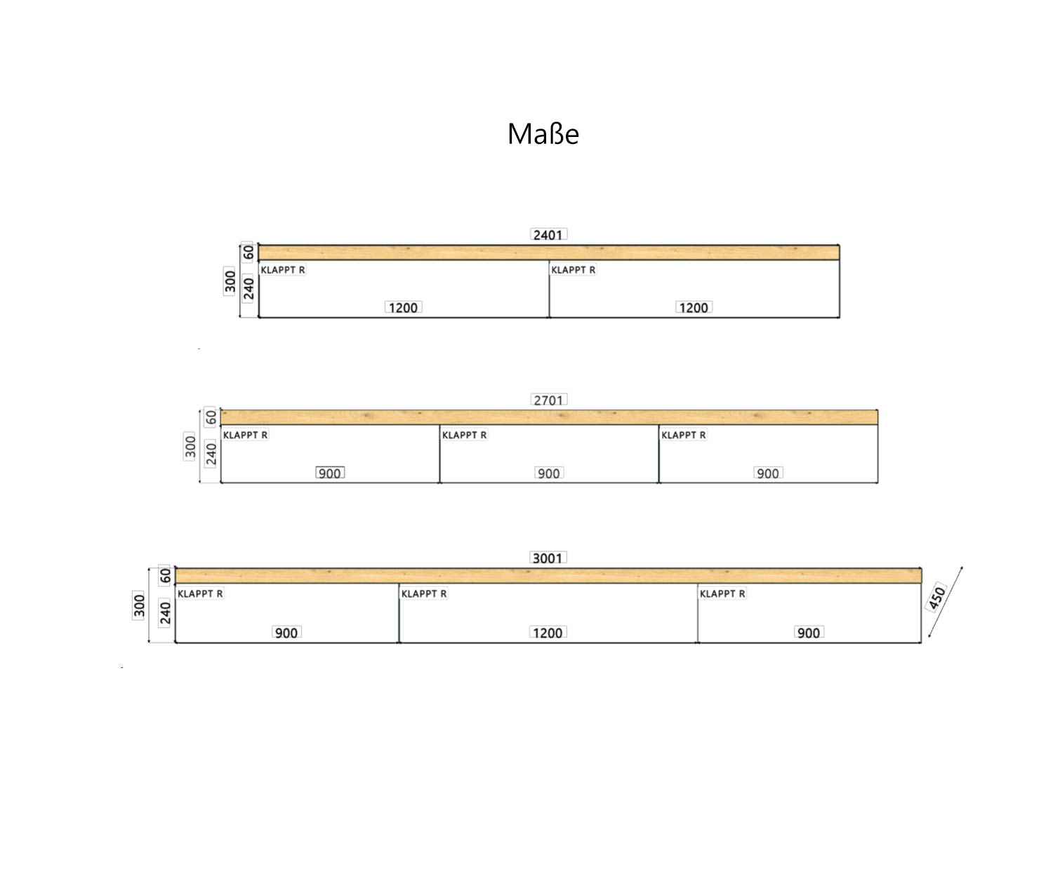 Afmetingen: B 300 cm / H 30 cm / D 45 cmVouwdeuren