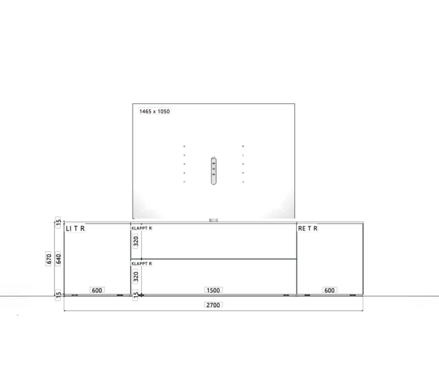 x klepdeur (midden): B 150 cm / H 32 cm