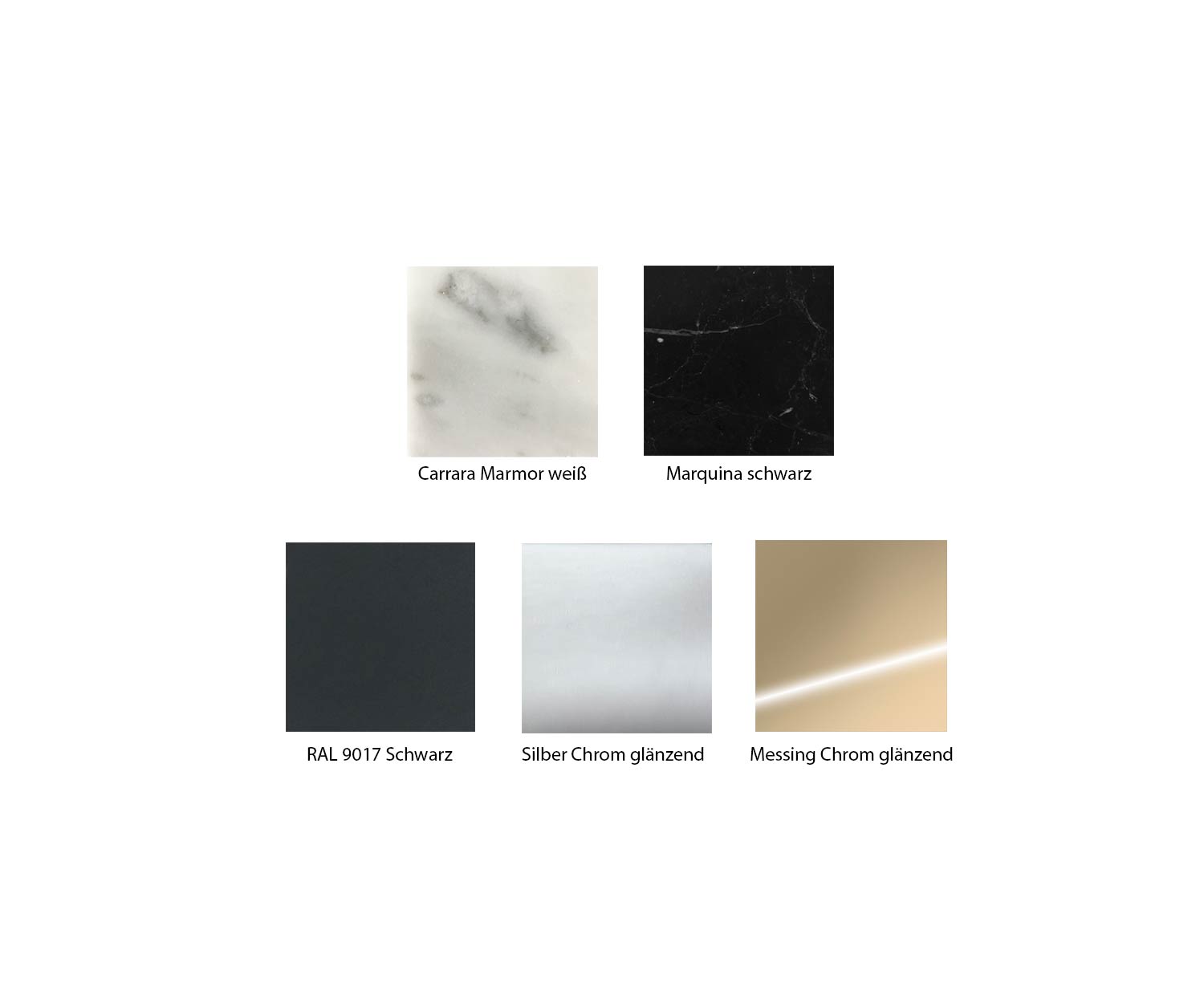 Het marmeren blad van salontafel Thor is verkrijgbaar in 3 kleuren: wit, zwart of goud marmer. Het metalen onderstel is verkrijgbaar in zwart, zilver of messing. We bieden twee verschillende afwerkingen voor je marmeren tafel: Een X-Stone impregnering en een polyester coating.