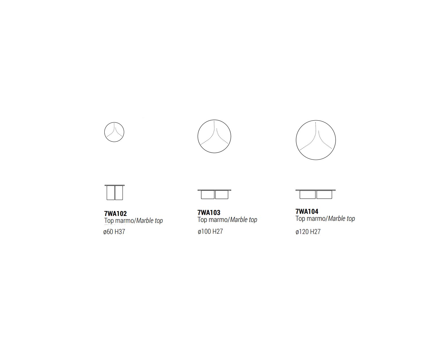 De Marelli design salontafel Wave is verkrijgbaar in de volgende afmetingen