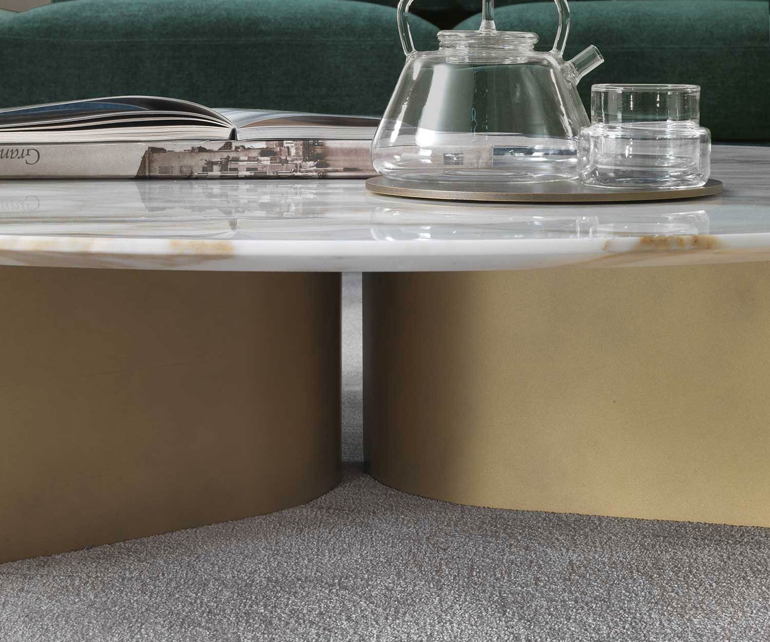 Het tafelblad van de Marelli Wave tafel is gemaakt van hoogwaardig Italiaans marmer (Carrara, Arabescato of Calacatta Gold).