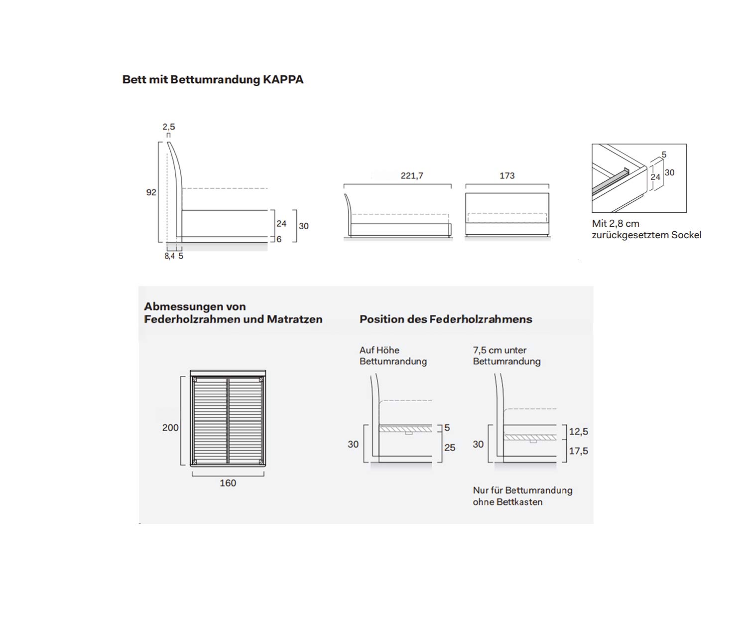 Insteekdiepte matras: niveau 1: 0 cm; niveau 2: 7,5 cm (160 x 200 cm)