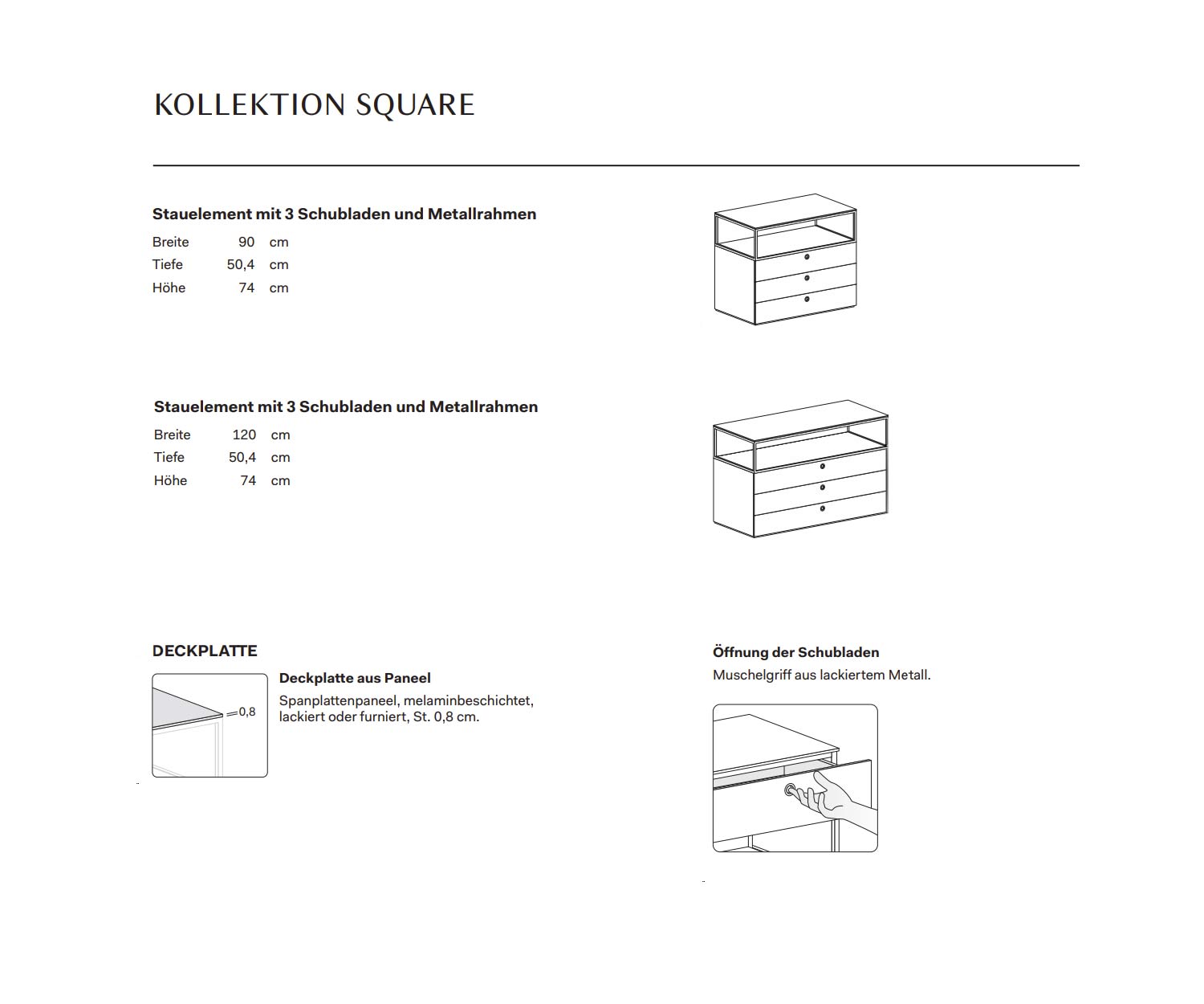 De Square ladekast is verkrijgbaar in de volgende afmetingen en uitvoeringen: