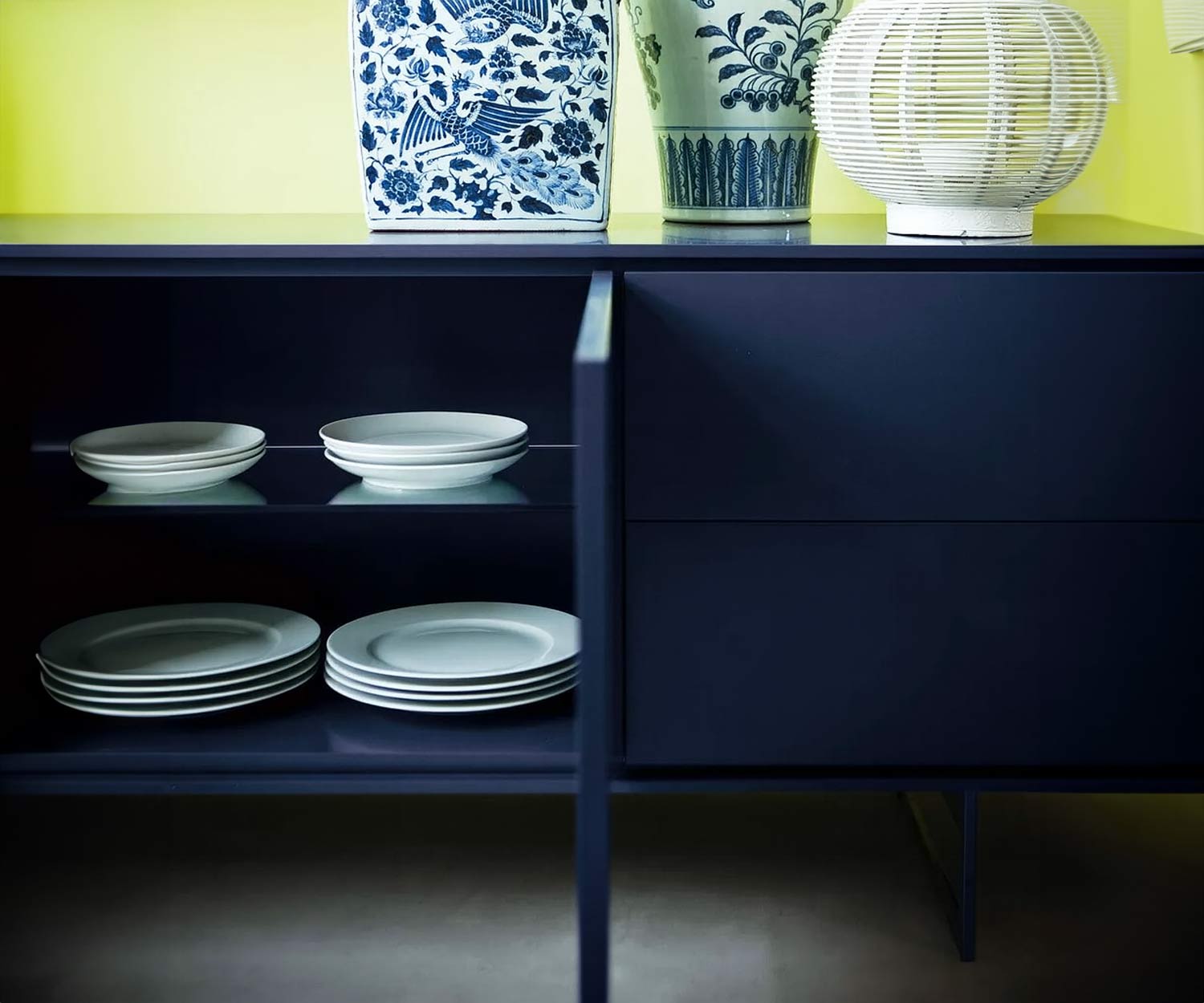 Het dressoir is verkrijgbaar in 6 matte kleuren . De voorkant en de romp van de lampenkap kunnen in verschillende kleuren worden gecombineerd voor een speciaal contrast.