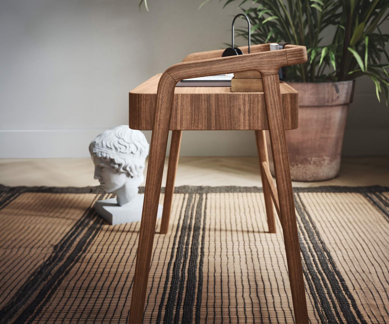 NovamobiliPrachtig notenhouten bureau van . Het Knot bureau wordt alleen voor u op bestelling gemaakt in Italië. Het lichte Scandinavische ontwerp maakt indruk met een rechtlijnig voorgevormd houten frame.