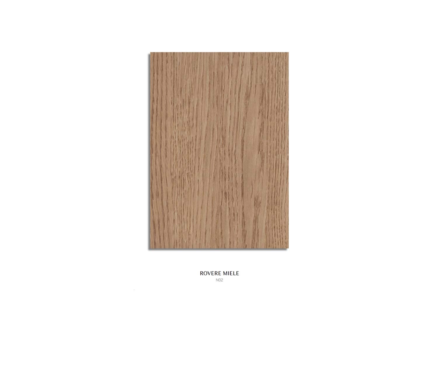 Bij de highboarduitvoering met glasdeuren zijn de achterwand en de legplanken aan de binnenkant gefineerd in Miele 02 eik.