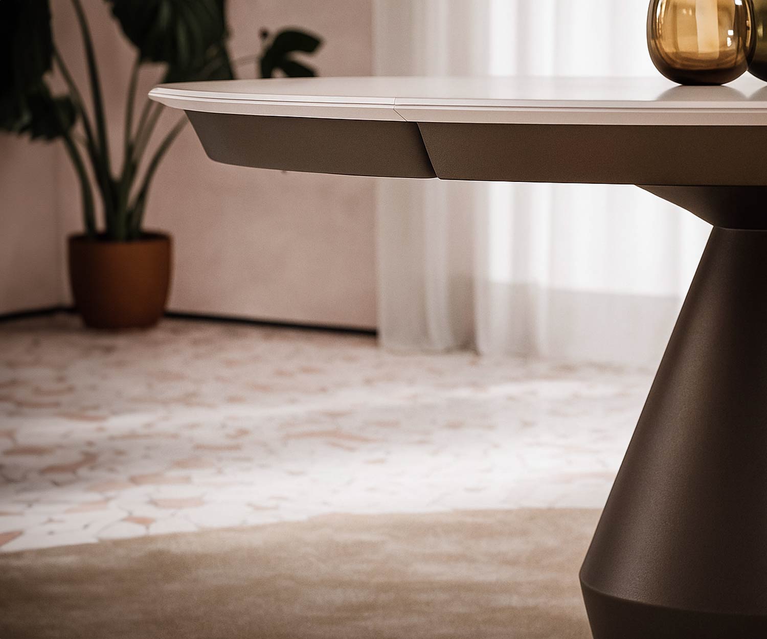 De Ozzio Design Lycos ronde eettafel is verkrijgbaar in twee versies verkrijgbaar: