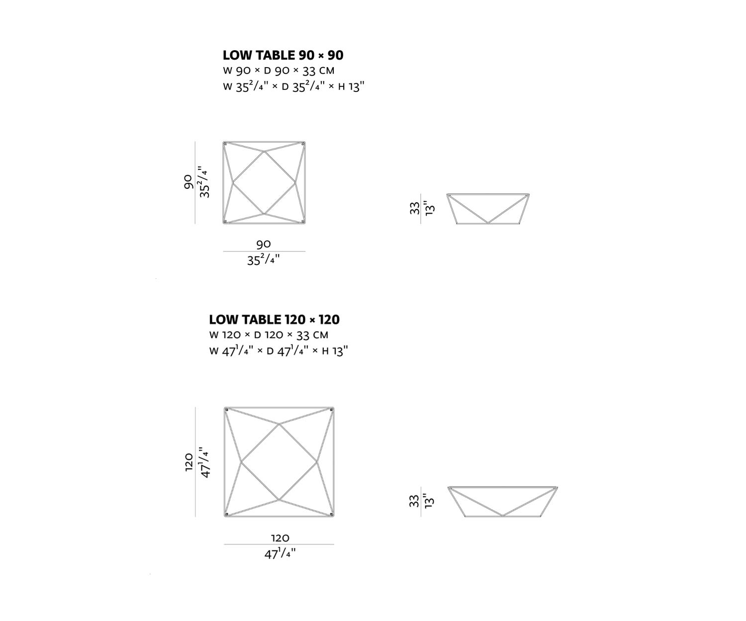 Prostoria De Avet salontafel is verkrijgbaar in de volgende afmetingen: