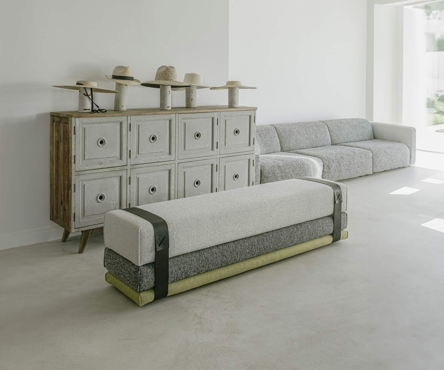 De royale afmetingen maken de Bavul verstelbare bank bijzonder geschikt voor de moderne woning of minimalistische horecaprojecten waar ruimte schaars is. Een praktisch en stijlvol meubelstuk dat overtuigt als zitplaats en als extra bed of matras voor gasten.
