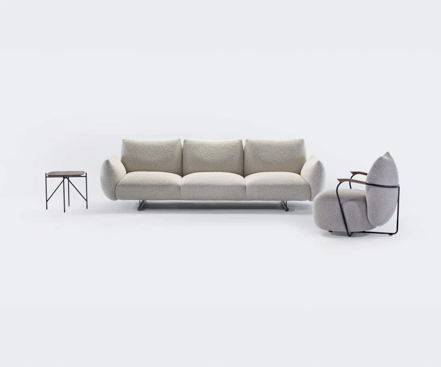 D e bekledingsstof van de Buffa designbank is verkrijgbaar in 3 kleuren: bouclé beige, lichtgrijsof donkergrijs. De Buffa bank is verkrijgbaar in twee uitvoeringen: als 2-zits en als 3-zits, elk met de optie van een armleuning voor extra comfort.