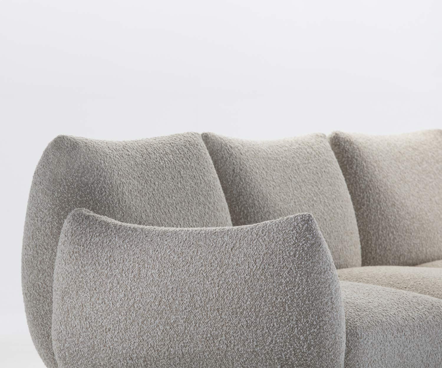 Prostoria De Buffa Bouclé sofa van is een uitzonderlijke zitoptie die een absoluut hoogtepunt zal zijn in elke moderne woonkamer. Met zijn mollige, gezwollen vorm die direct comfort belooft en taps toelopende randen die de innerlijke volheid nog meer benadrukken, geeft deze bank een luxueuze uitstraling aan elke kamer.