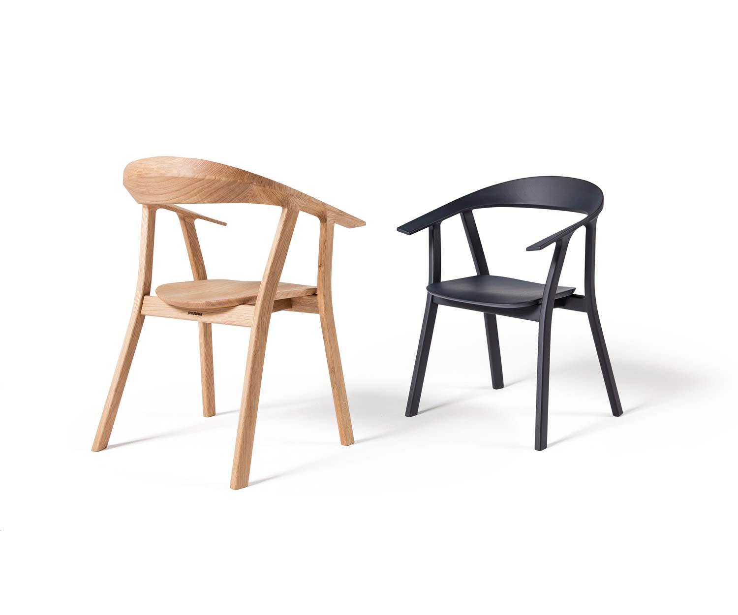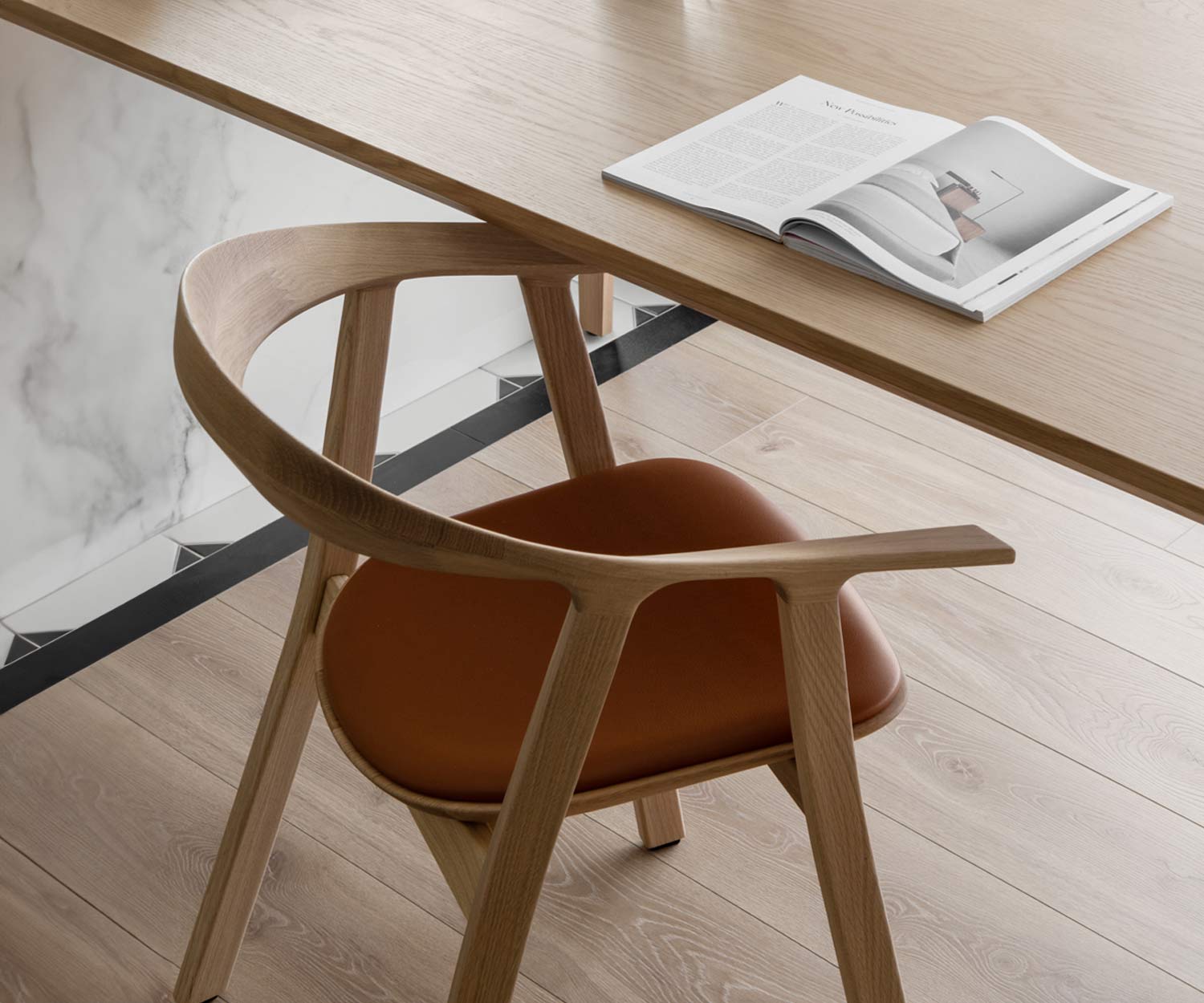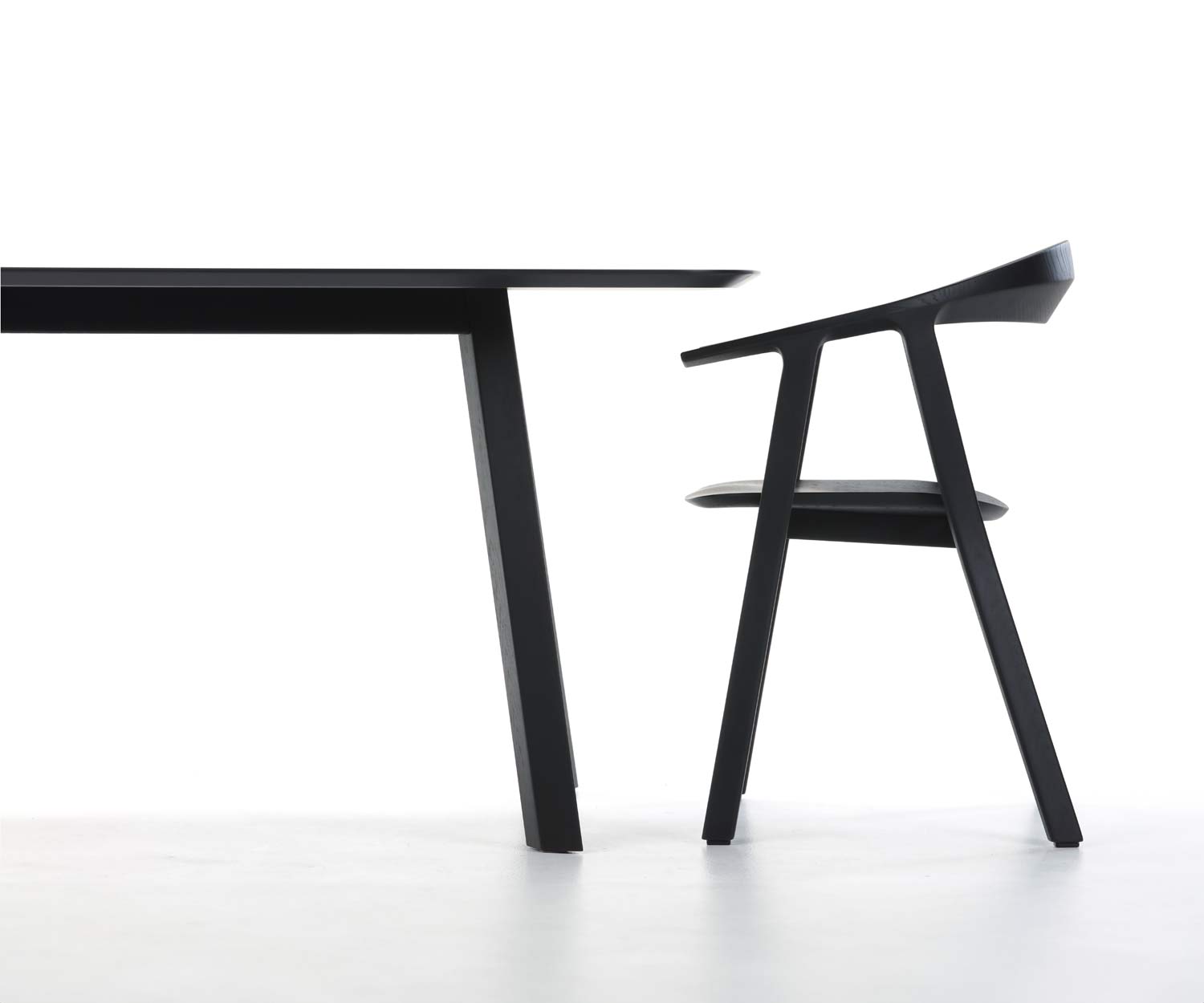D e unieke roterende diamantvormige dwarsdoorsnede van de stoel past perfect bij de Rhomb eettafel en verandert van vorm langs de rugleuning en armleuningen, waardoor de Rhomb stoel een dynamische, organische structuur krijgt. Materialen