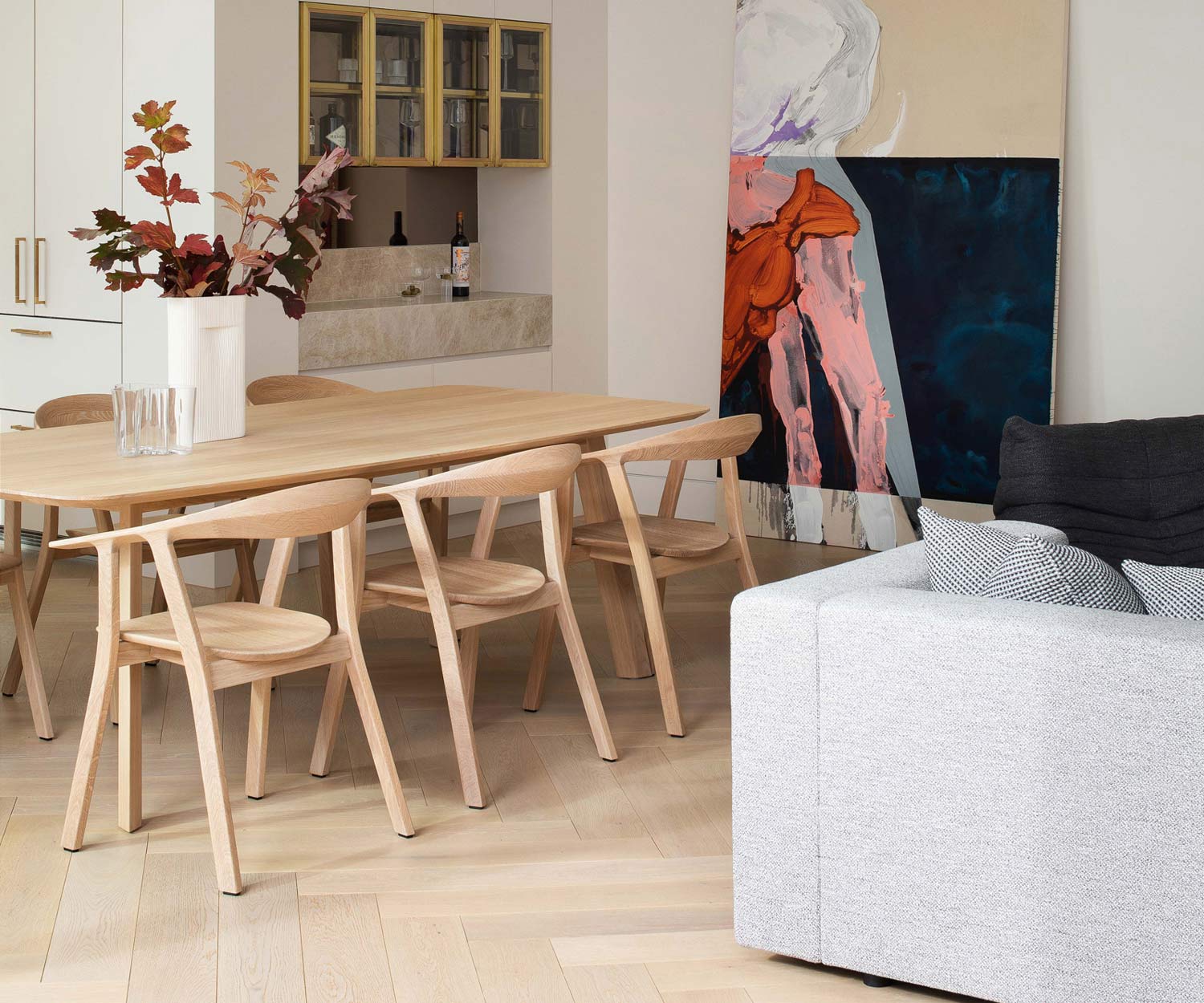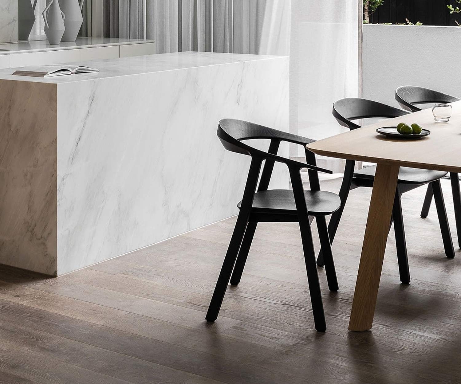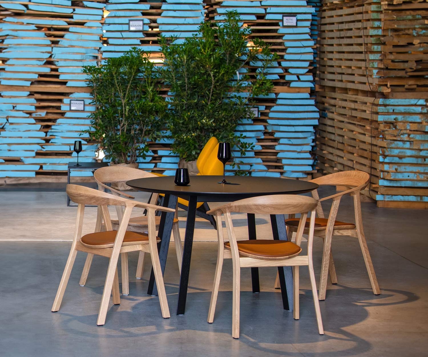D e unieke roterende diamantvormige dwarsdoorsnede van de stoel past perfect bij de Rhomb eettafel en verandert van vorm langs de rugleuning en armleuningen, waardoor de Rhomb stoel een dynamische, organische structuur krijgt. Materialen