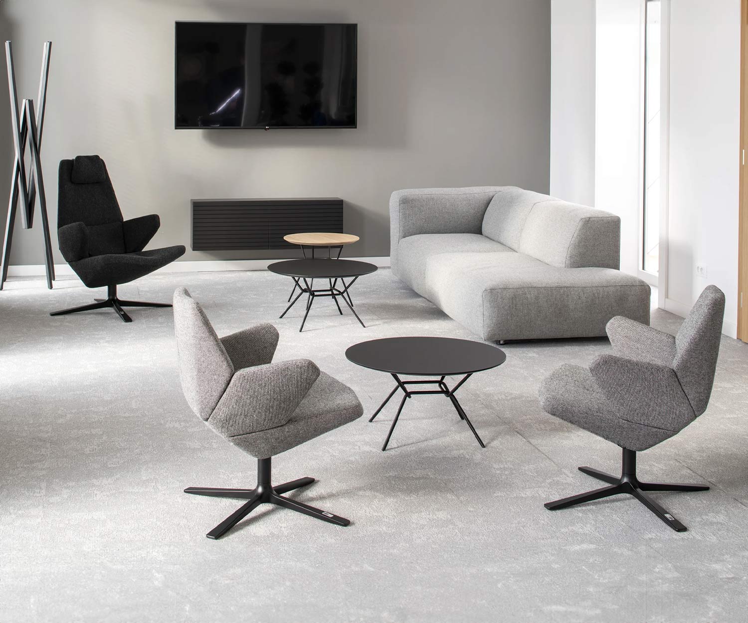 Alle Trifidae design modellen hebben een licht hellende zitpositie die het lichaam in een ontspannen positie brengt. Vergeleken met de conventionele Trifidae fauteuil hebben de lounge stoel en de wing stoel een verhoogde rugleuning met een hoofdsteunkussen. Voor een betere afscherming van de omgeving heeft de wing chair zijdelingse flanken, de oren, die achtergrondgeluiden aanzienlijk verminderen.