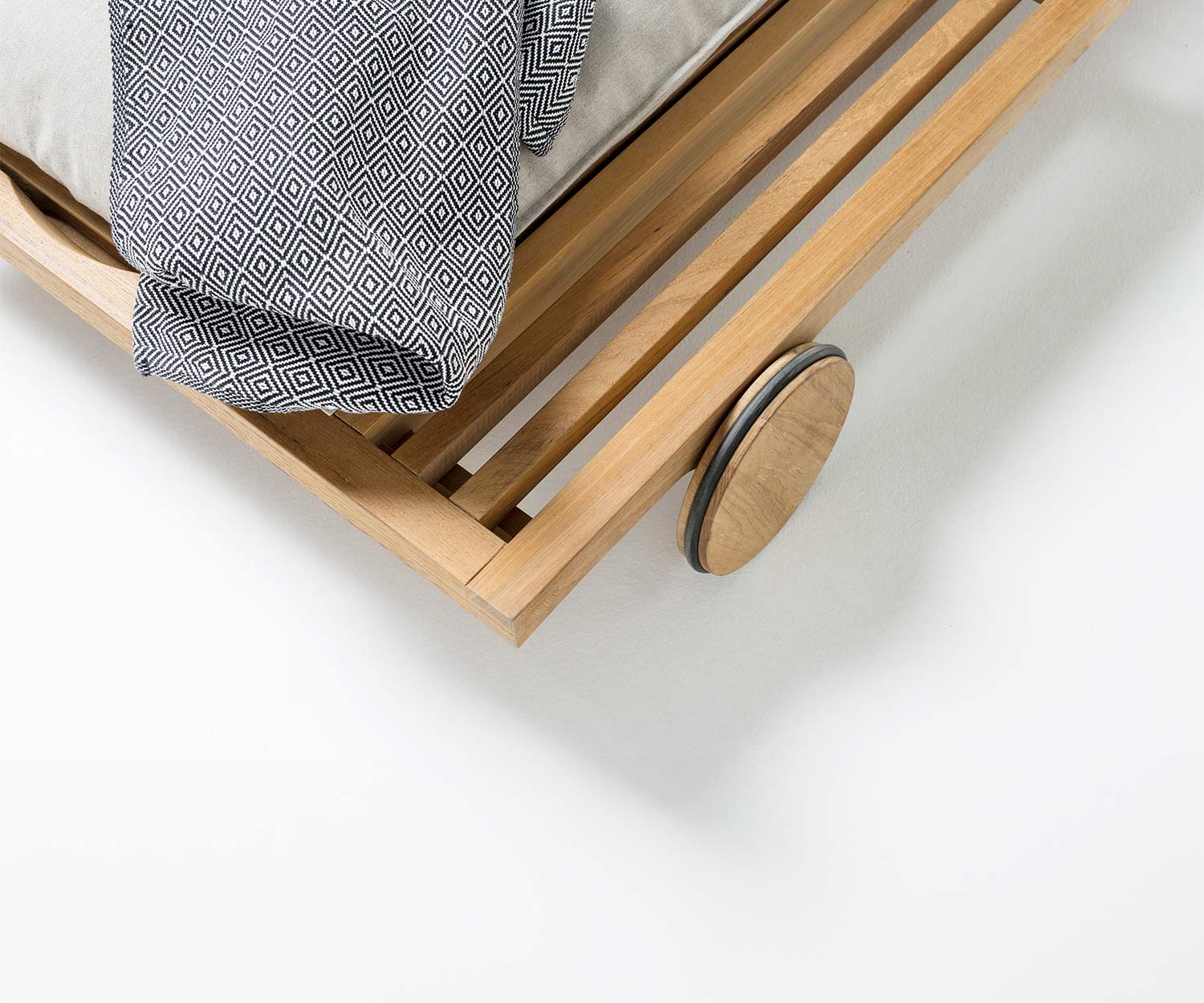 De hoogwaardige Umomoku buitenmeubelen zijn geschikt voor zowel binnen als buiten. De gestoffeerde kussens zijn afneembaar voor reiniging. Het ligbed is bijzonder functioneel omdat de rugleuning aan beide kanten kan worden geopend.