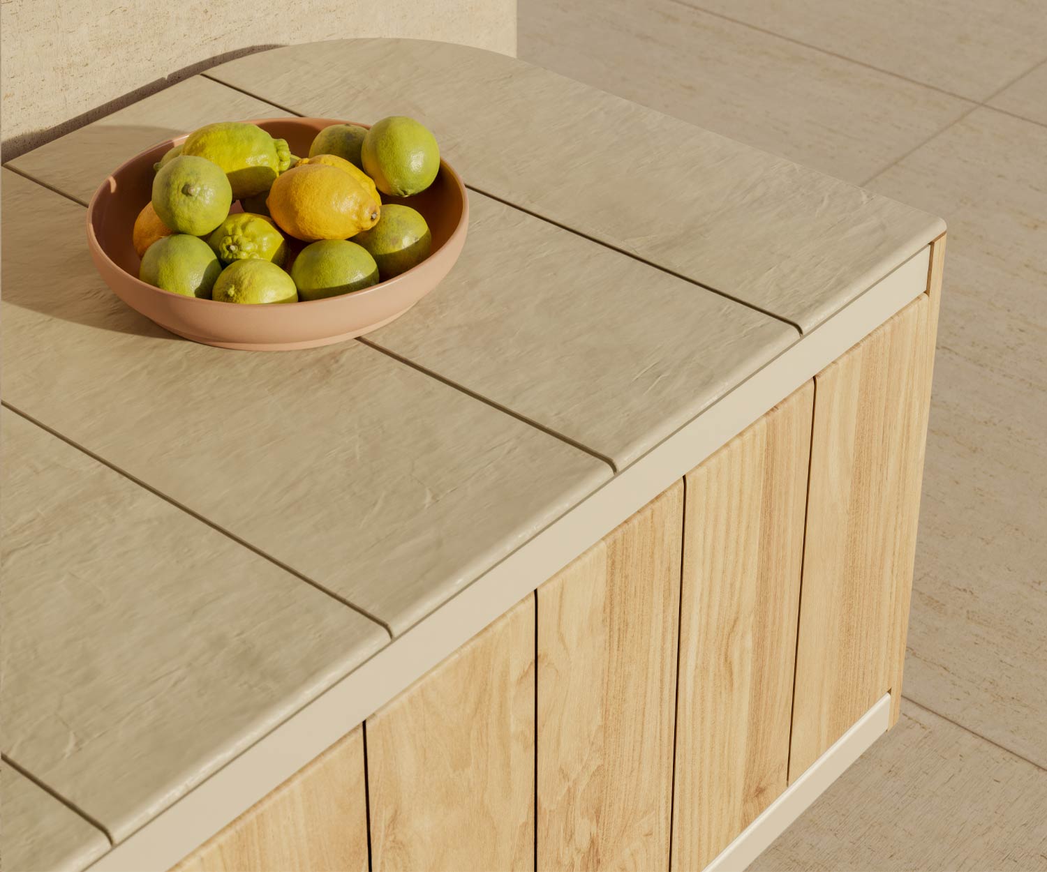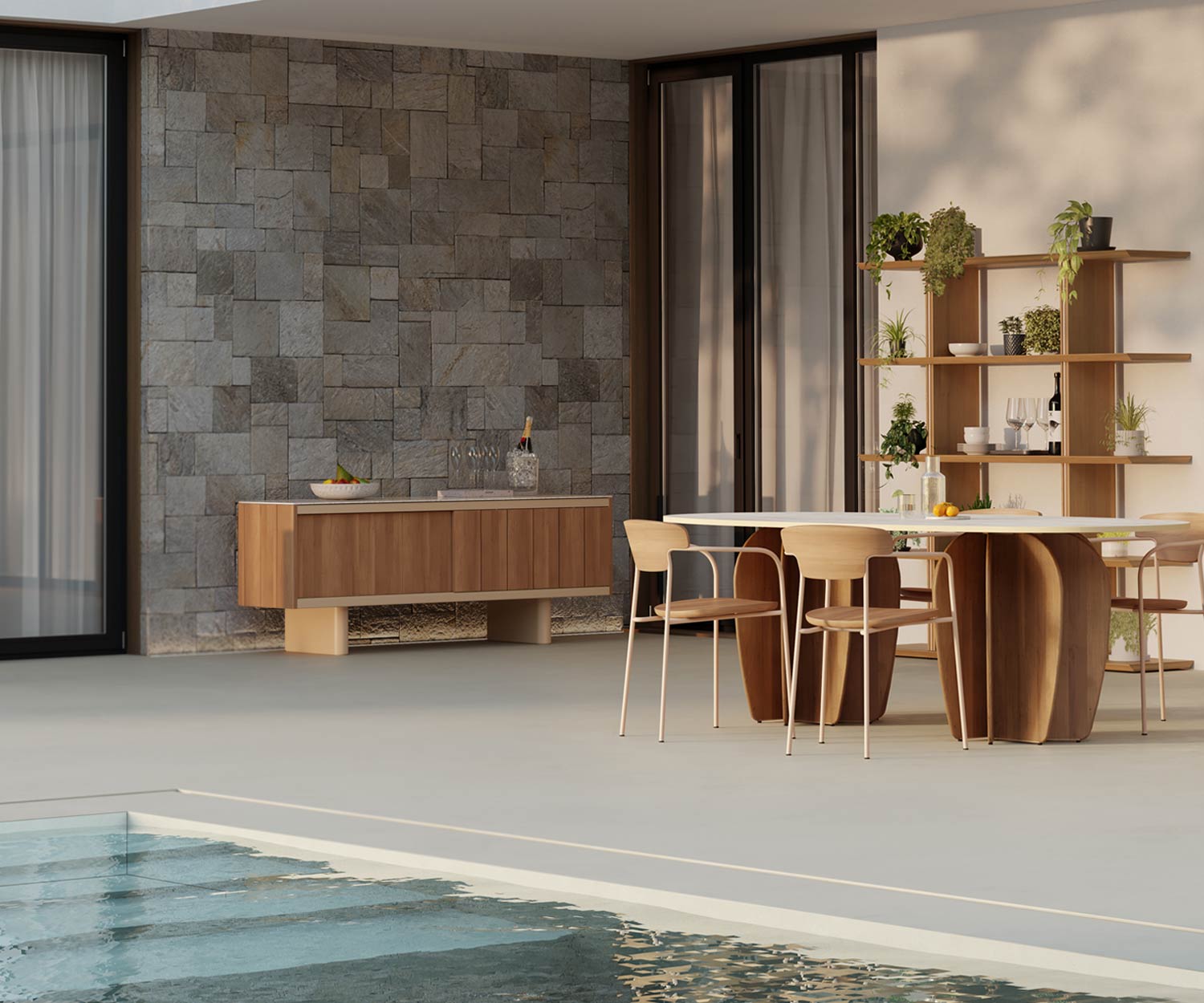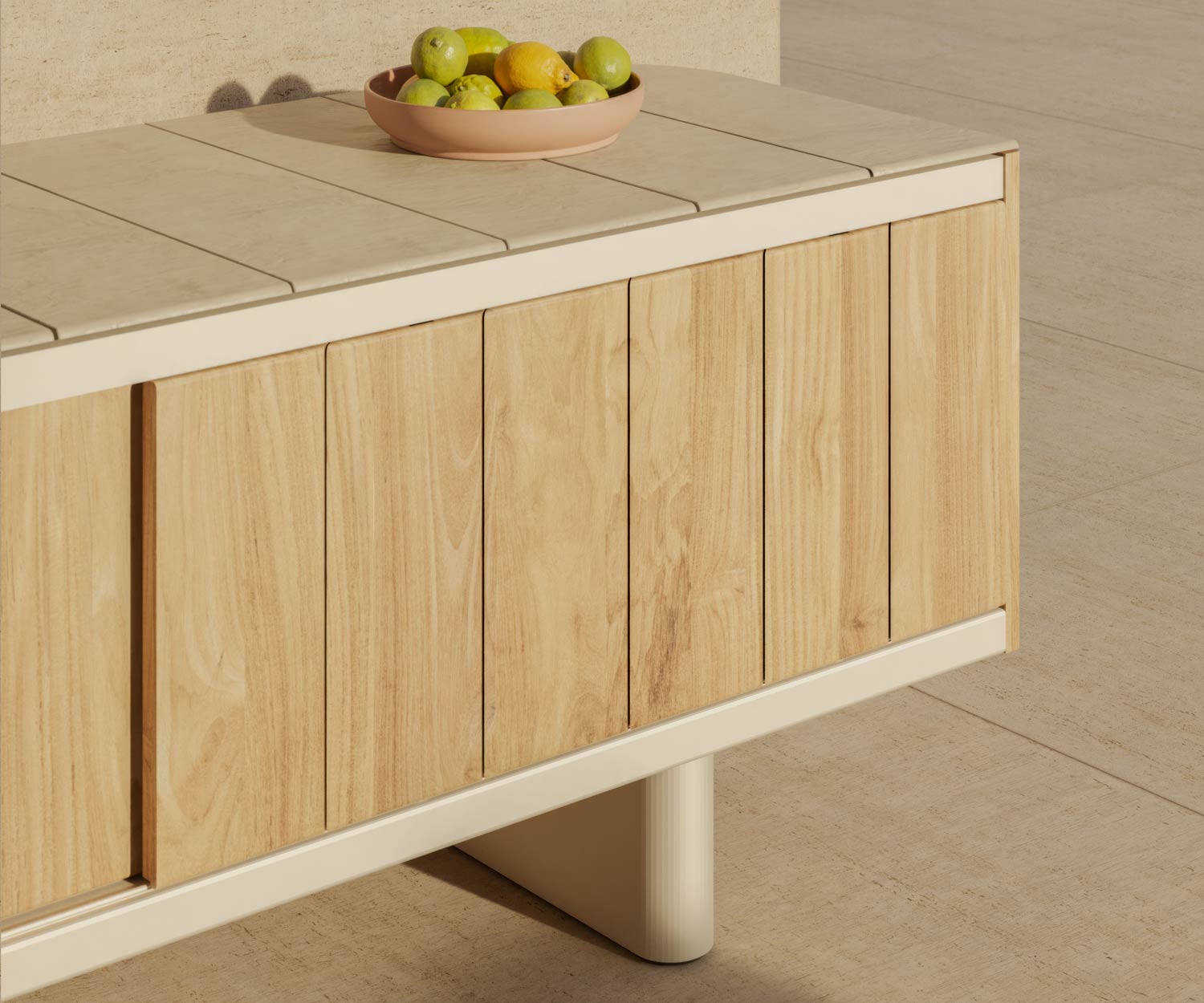 Met zijn nieuwe materialen - de combinatie van hoogwaardig keramiek en teak - biedt het Atrio outdoor dressoir