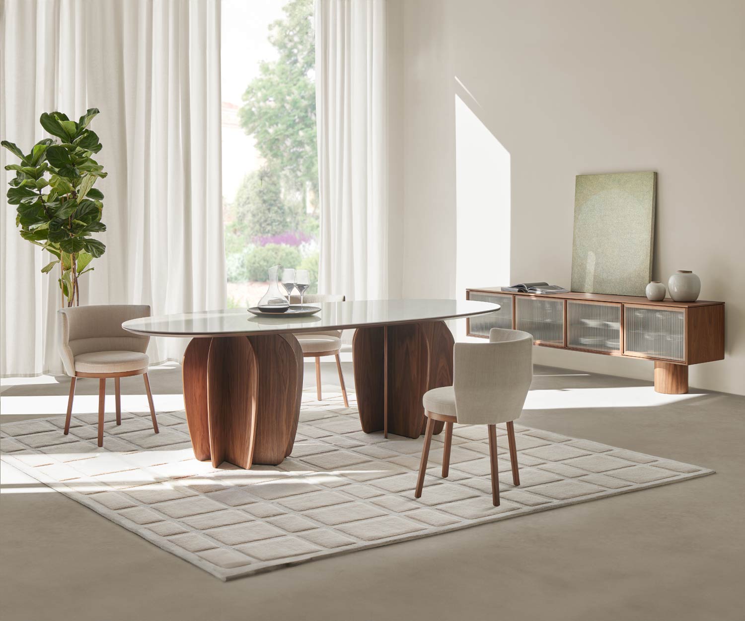 Punt Het onderhoud van de Coral eettafel is heel eenvoudig. Een zachte, licht vochtige doek en een mild en een mild schoonmaakmiddel is alles wat u nodig hebt om de oppervlakken voorzichtig schoon te maken. reinig de oppervlakken voorzichtig. Vermijd contact met harde voorwerpen en agressieve schoonmaakmiddelen om de tafel in perfecte staat te houden. houd de tafel in perfecte staat.