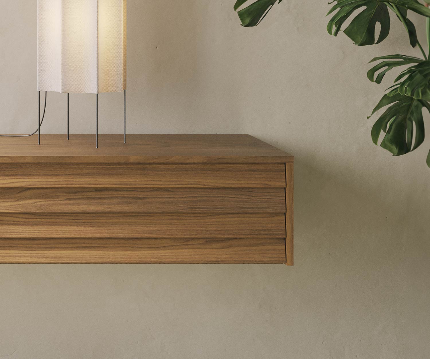 Punt Afhankelijk van de wensen kan elke versie van het Sussex nachtkastje - 1 lade of 2 laden - besteld worden met vlakke 6 cm of 17 cm en 29 cm hoge poten. Het design nachtkastje kan ook eenvoudig worden opgehangen met behulp van een muurbevestigingsset voor meer opbergruimte en een gemakkelijk schoon te maken slaapkamer. Het lattenfront dient ook als onzichtbare greep en past naadloos in het design. Dankzij de Hettich loopwagens uit Duitsland lopen de laden bijzonder stil en sluiten ze altijd automatisch(soft-close demping technologie).