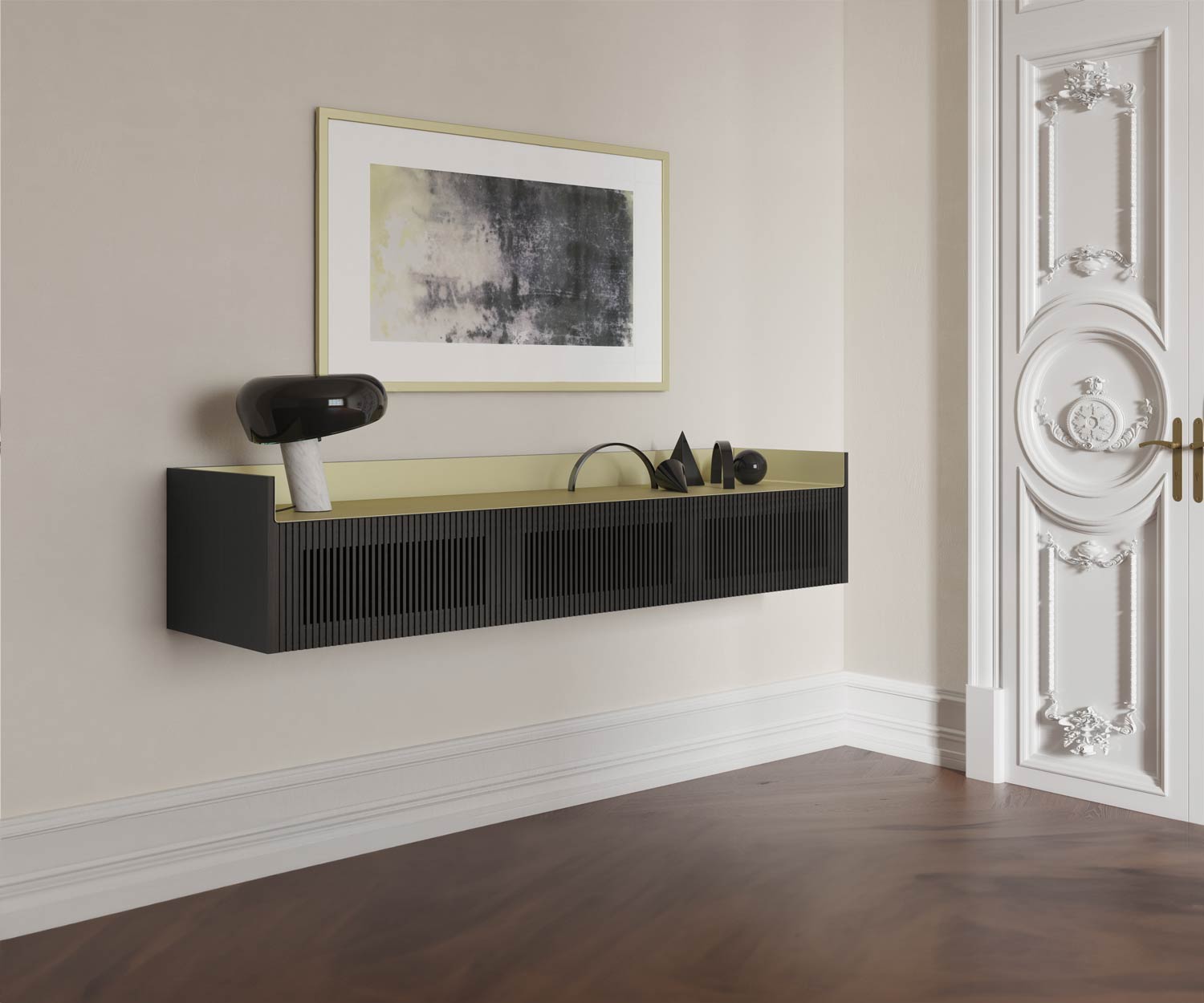 Het TV lowboard Stockholm is verkrijgbaar voor wandmontage. Op verzoek kan het dressoir ook worden besteld met een sokkel of pootjes. Het dressoir Stockholm maakt niet alleen indruk met zijn uitzonderlijke design, maar ook met zijn functie: