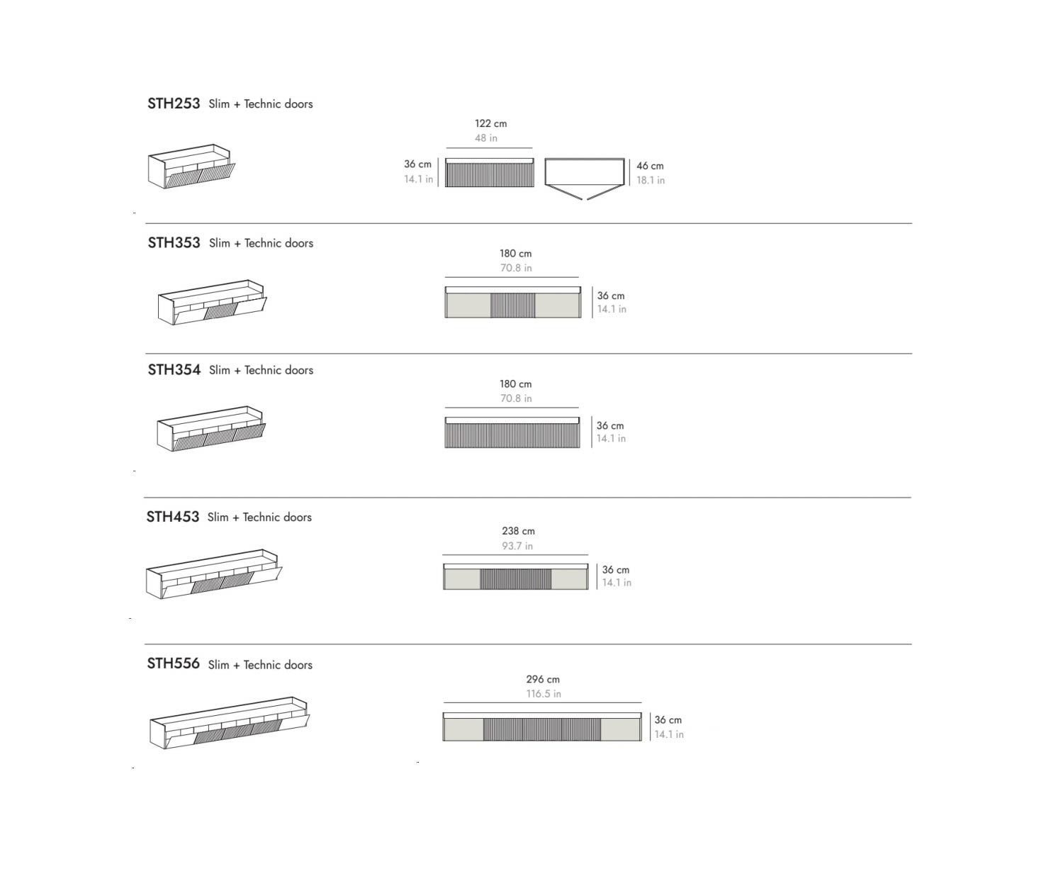 Het Punt Stockholm Slim TV dressoir is verkrijgbaar in 4 breedtematen: